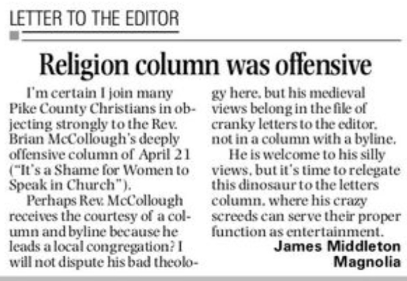 The following response to my article appeared in the April 28 edition of the Enterprise-Journal.